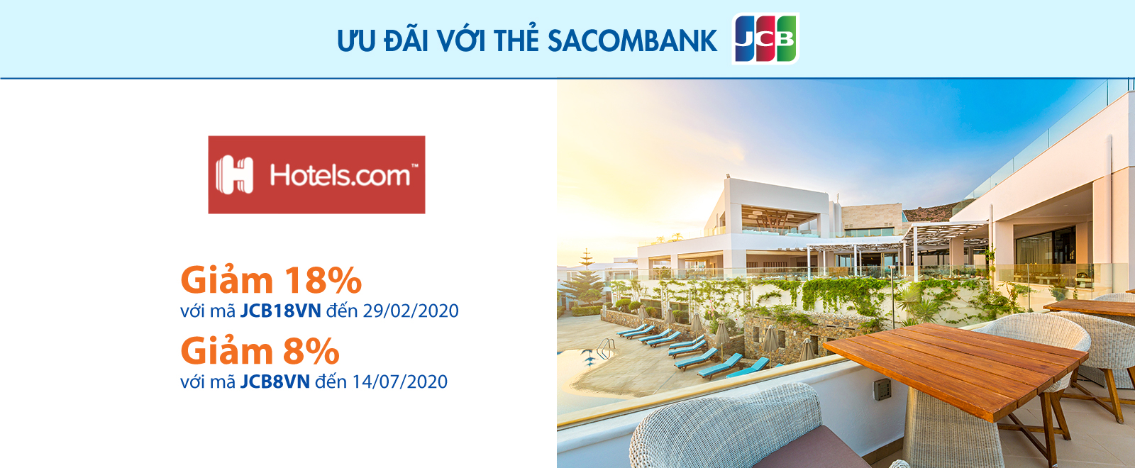 Hotels.com giảm 8-18% cho chủ thẻ Sacombank JCB