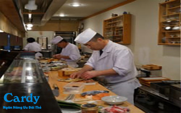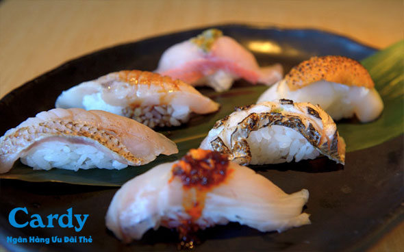 Giảm 15% cho hạng thẻ Platinum và thẻ World. Giảm 10% cho hạng thẻ Classic và Titanium. Tặng một món khai vị ( trừ Beef with Wasabi) cho hóa đơn trên 1.000.000đ