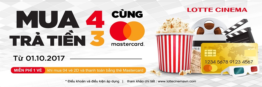 + Được miễn phí 01 vé (chỉ trả tiền 3 vé khi dùng thẻ Mastercard ).
